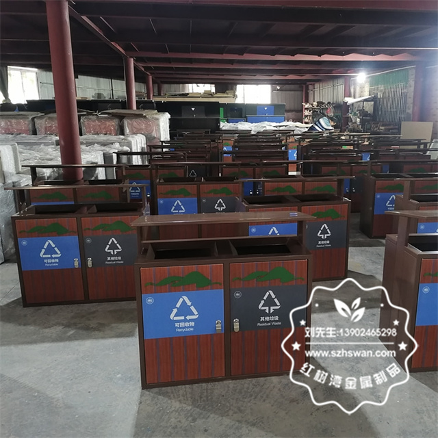 產品材質:深圳梧桐山景區轉木紋不銹鋼分類垃圾桶采用201#,202#,304#優質不銹鋼材料模壓成型,堅固耐用;內外表面光潔,減少垃圾殘留,易于清潔;配置鍍鋅板內桶,便于垃圾清倒;