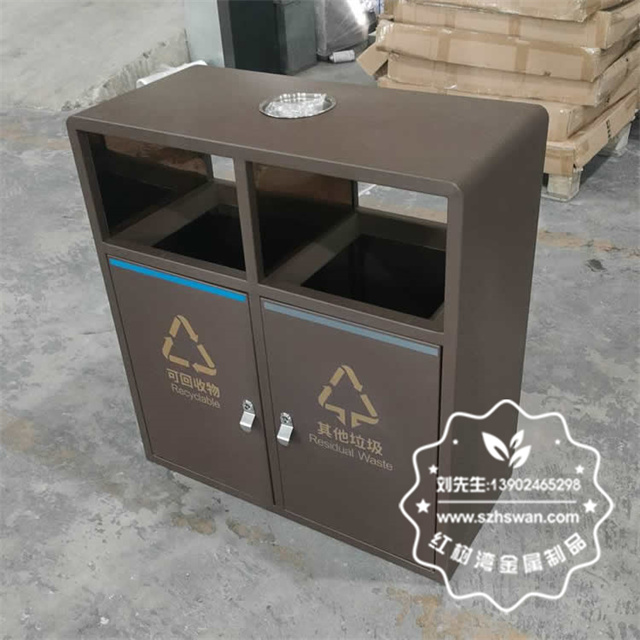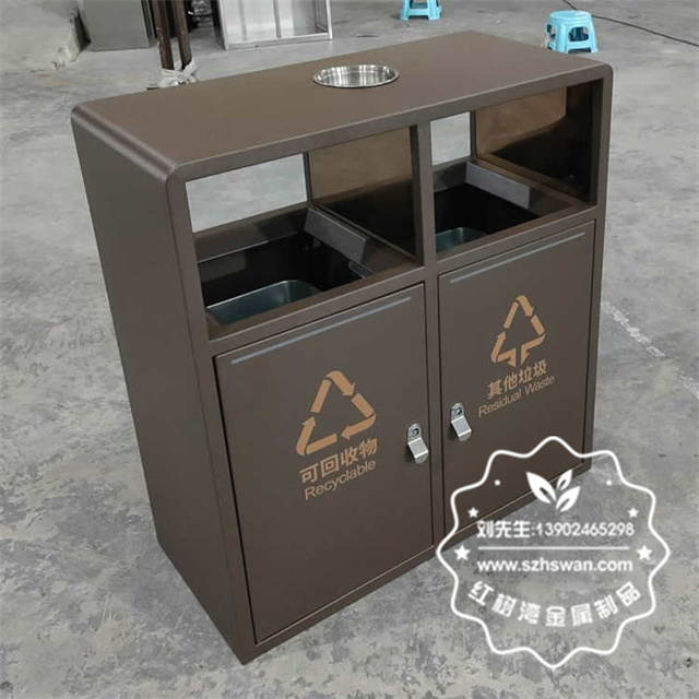 產品材質:戶外噴塑烤漆兩連體不銹鋼垃圾桶采用201#,202#,304#優質不銹鋼材料模壓成型,堅固耐用;內外表面光潔,減少垃圾殘留,易于清潔;配置鍍鋅板內桶,便于垃圾清倒;