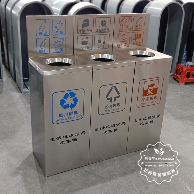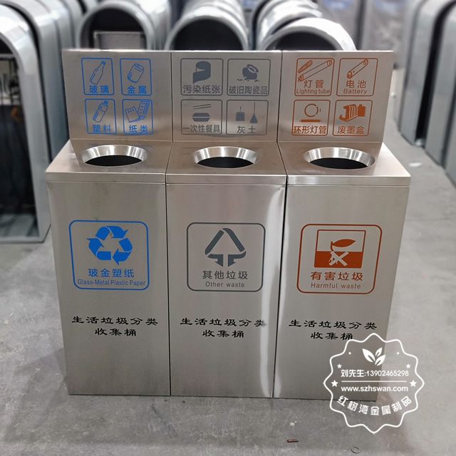 產品材質:室內方形直投口不銹鋼垃圾桶采用201#,202#,304#優質不銹鋼材料模壓成型,堅固耐用;內外表面光潔,減少垃圾殘留,易于清潔;配置鍍鋅板內桶,便于垃圾清倒;